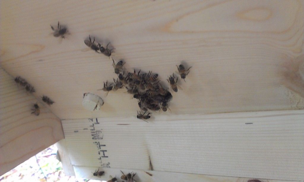 It didn't take the bees very long to figure out the entrance hole and start milling around the entrance.